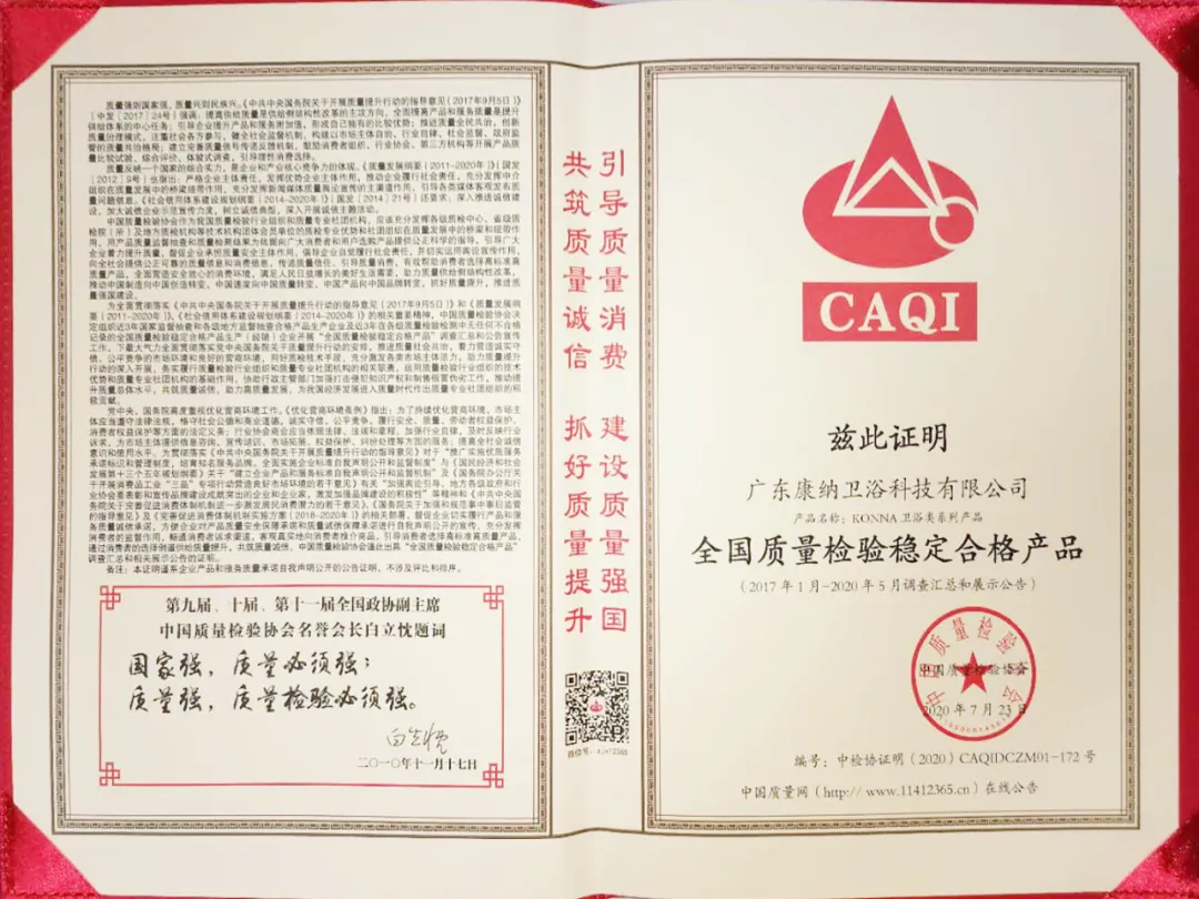 卫浴荣获“全国质量信誉保障产品”、“各地重量考察保持稳定合格率好产品”两项权威认可,充分肯定了广发体育